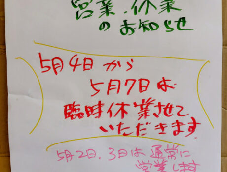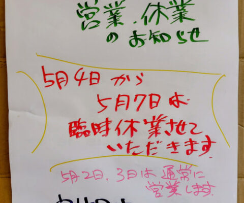 研修のため連休する場合があります。事前のお知らせはSNSや当サイトでお知らせいたします。